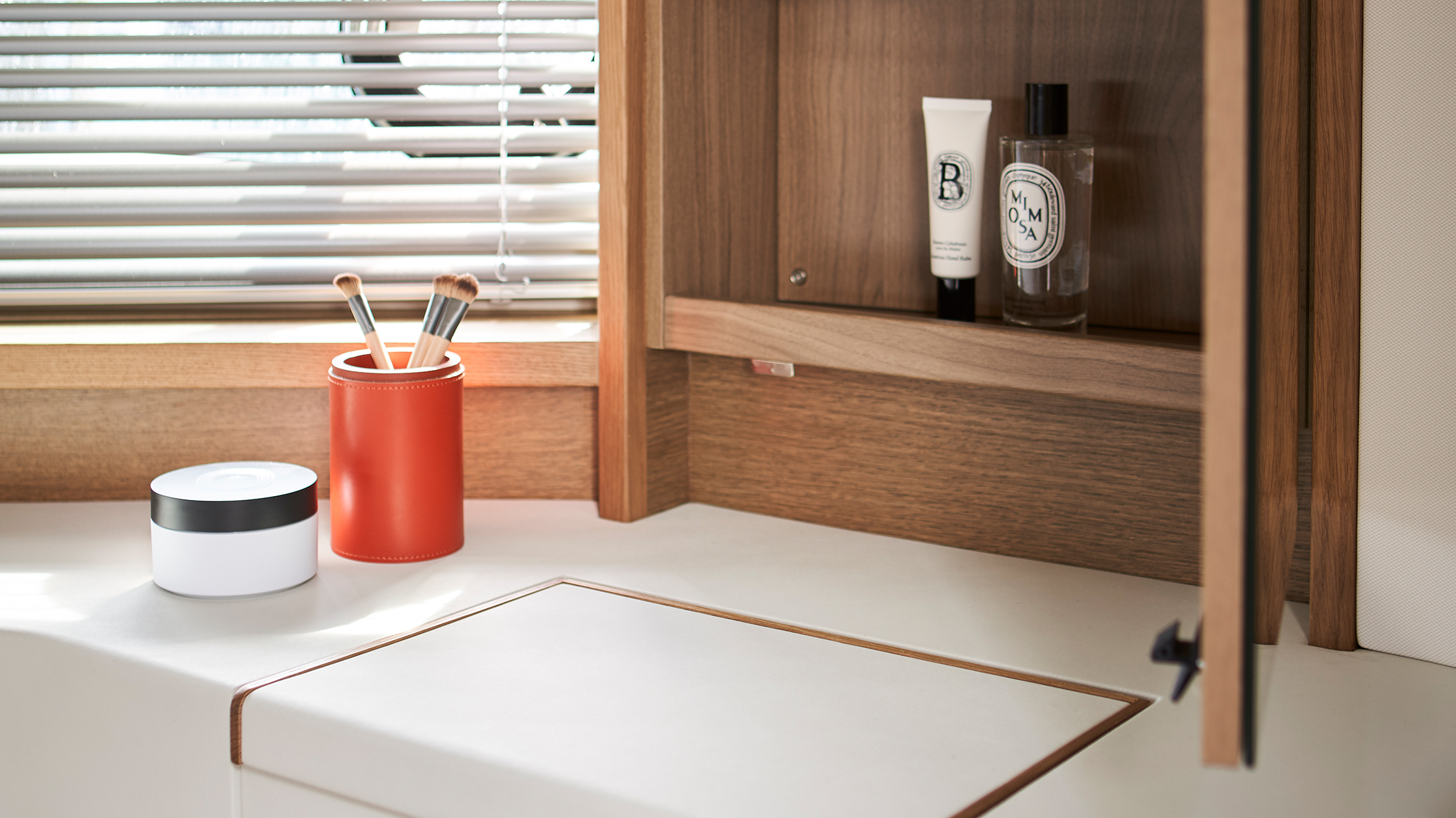 • Individualisieren Sie Ihre Yacht. Dazu stehen vier Holzoberflächen zur Auswahl.