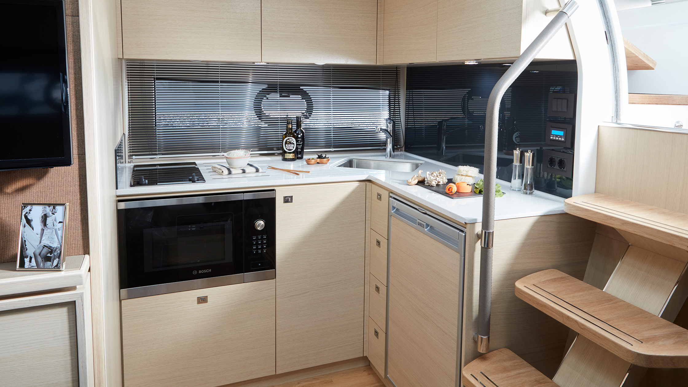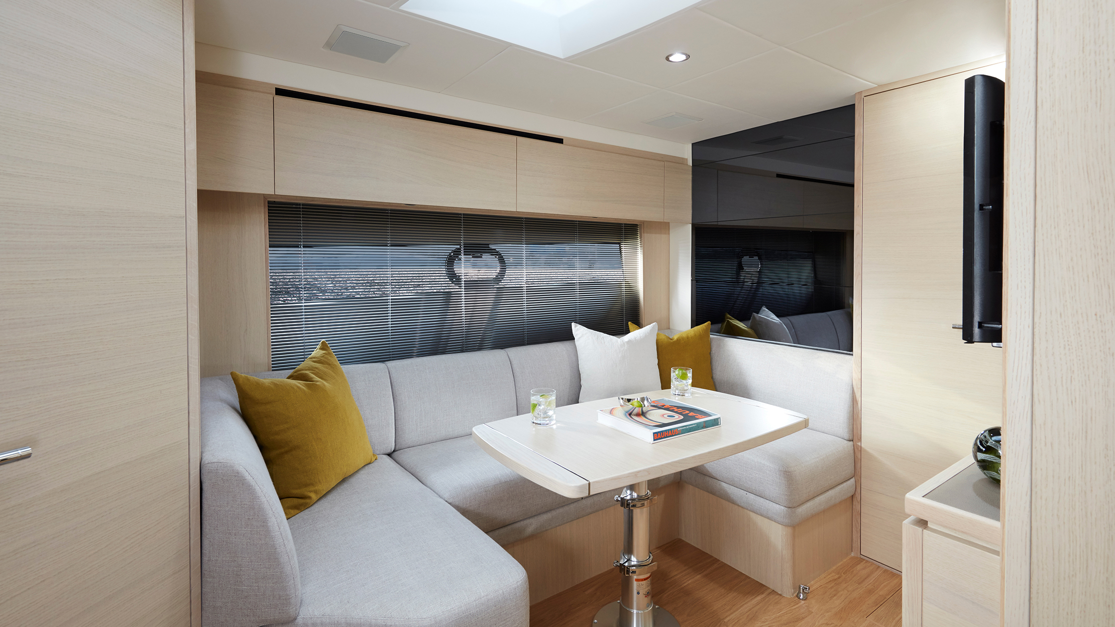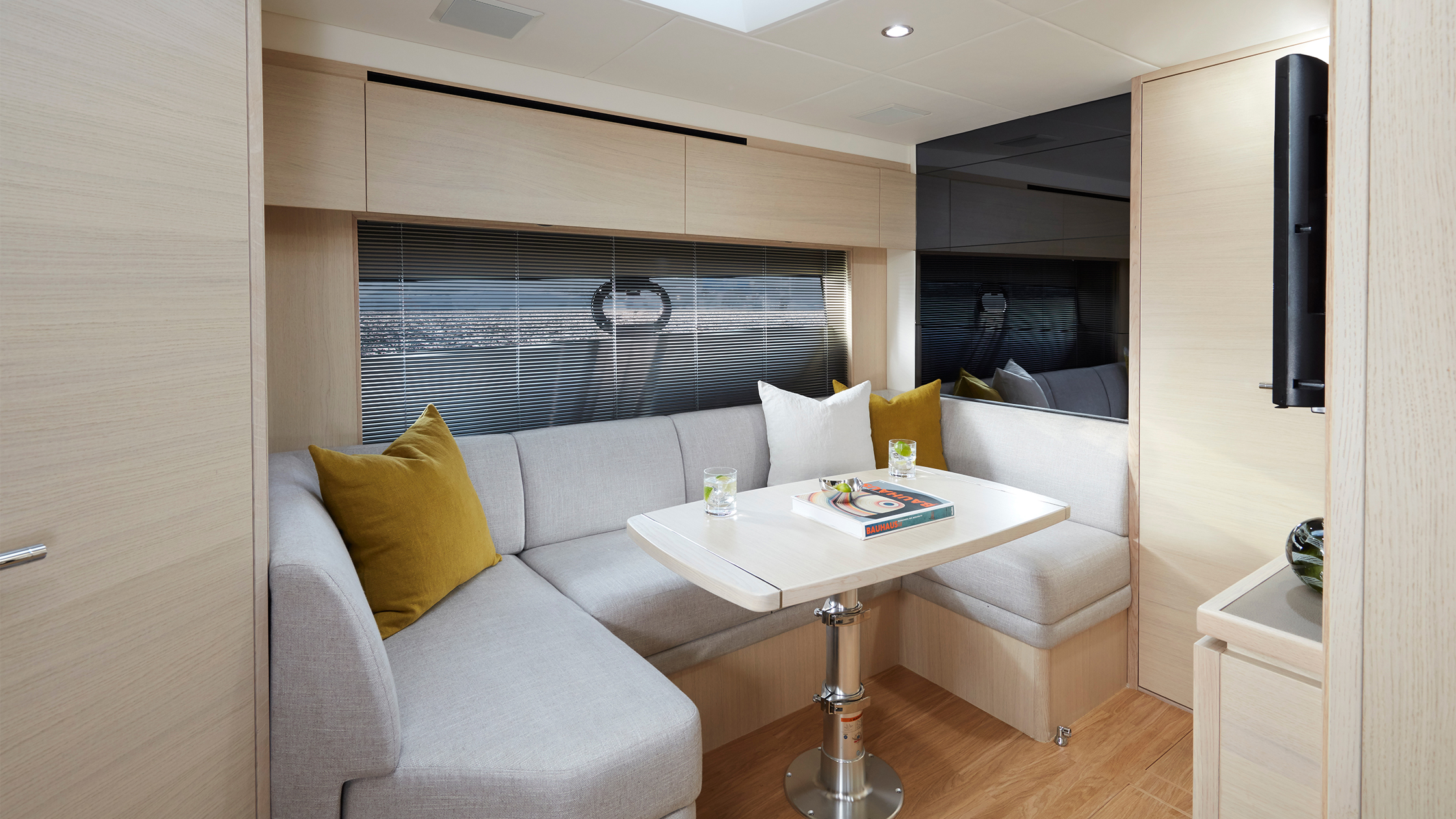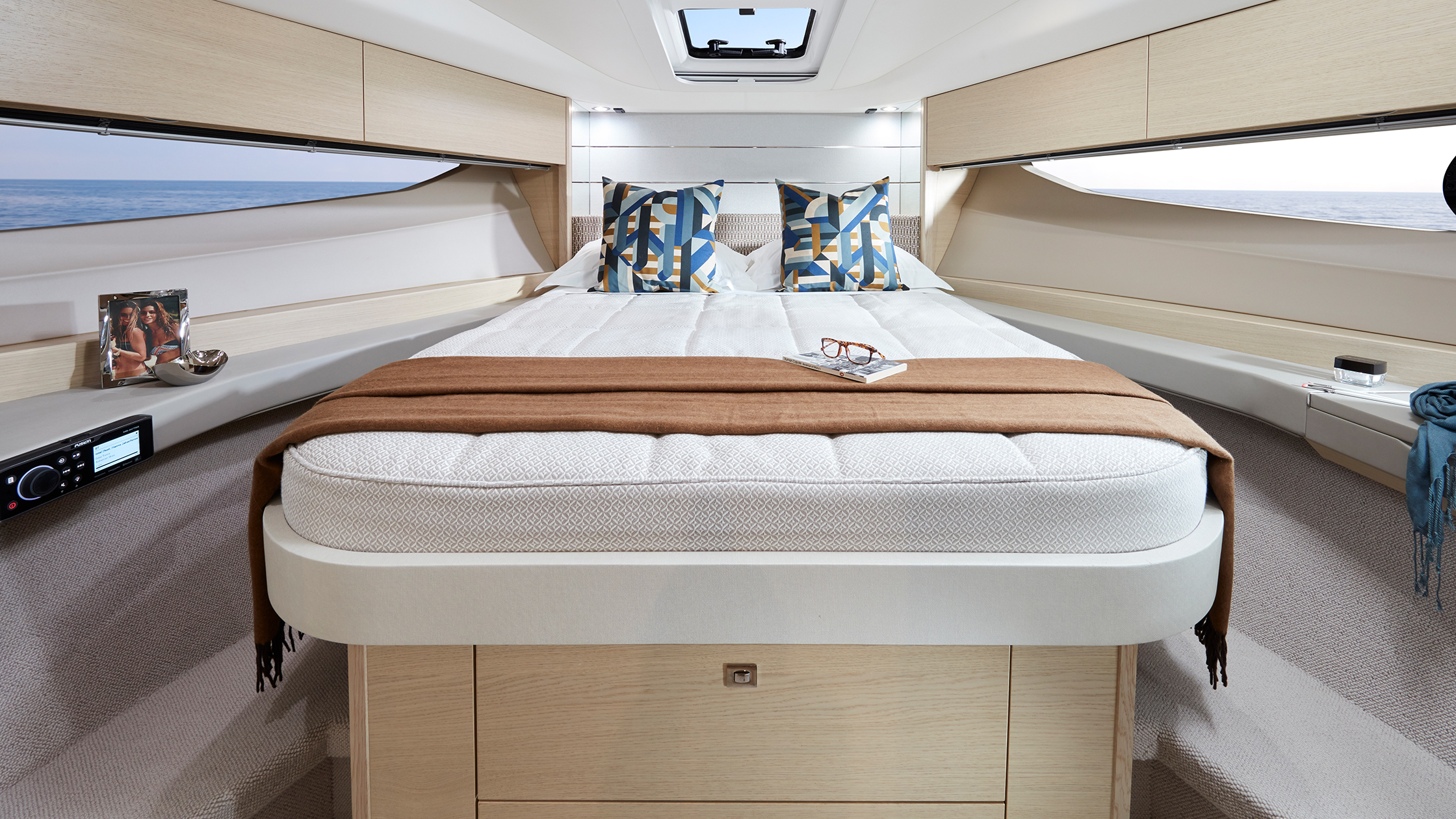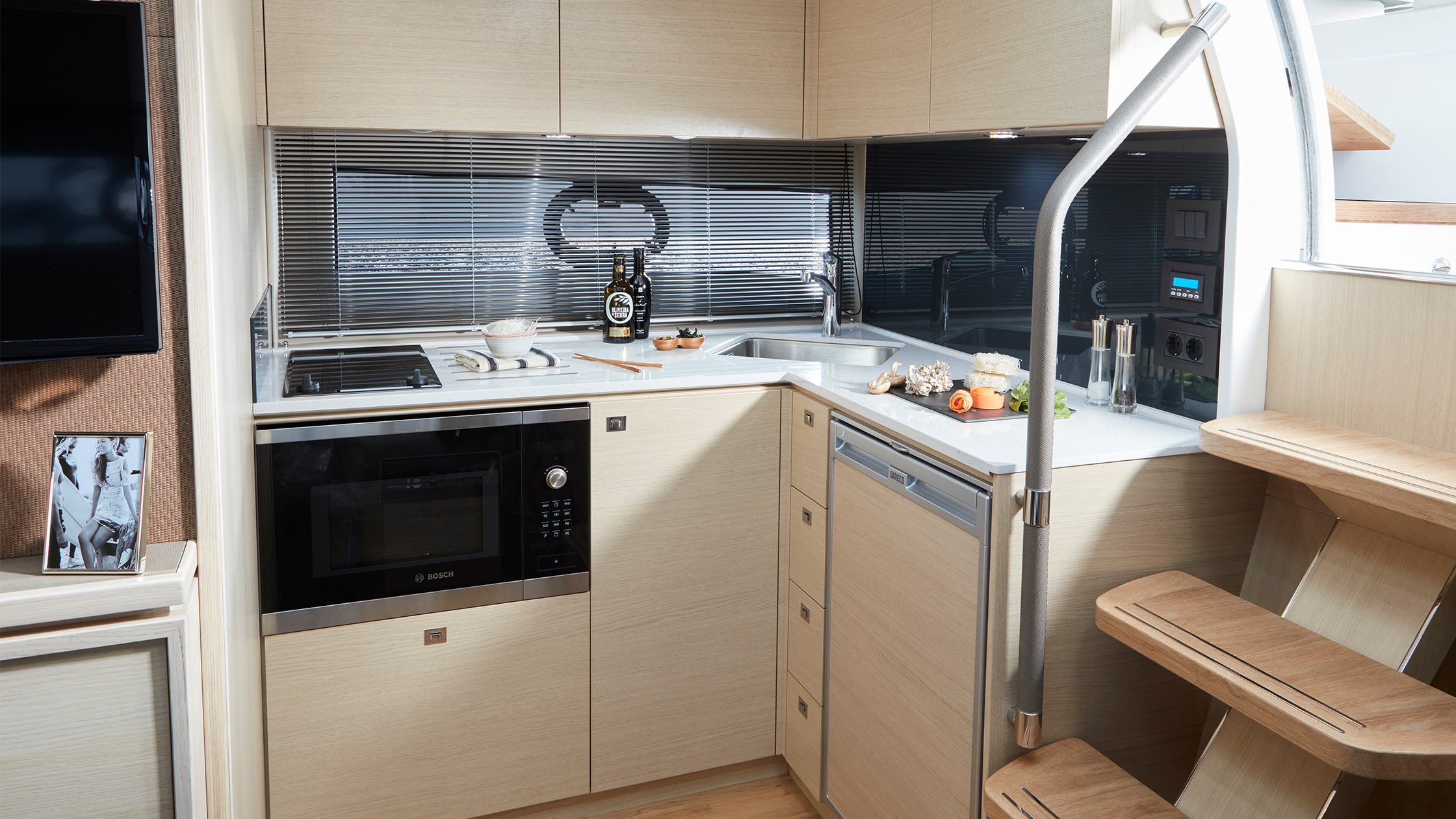 Das Innenraum-Design der V40 greift überall den modernen Look der V Class auf. Unter Deck bilden der geräumige Salon und die perfekt ausgestattete Kombüse zusammen einen extrem gemütlichen Bereich zur Bewirtung von Gästen.