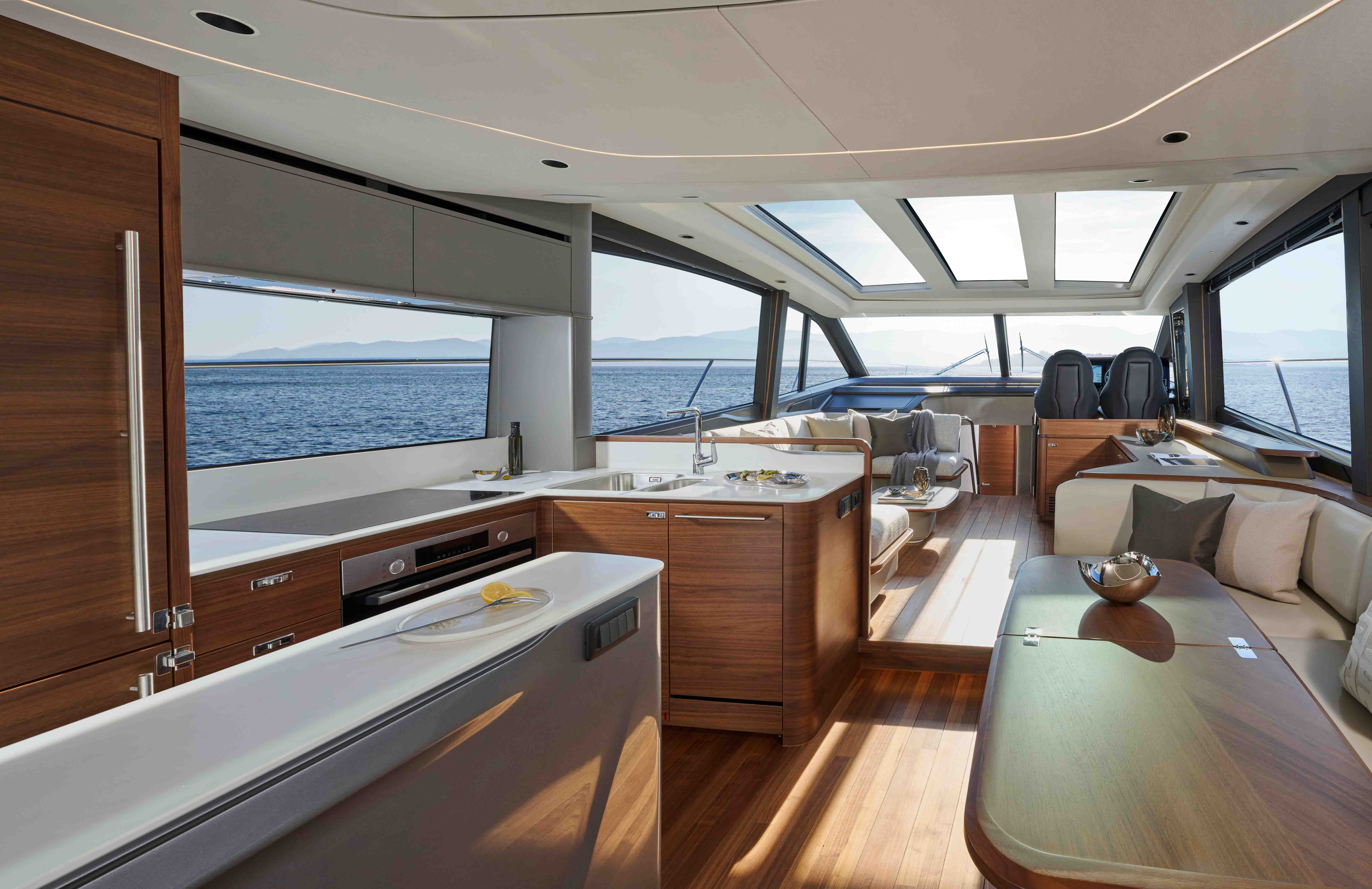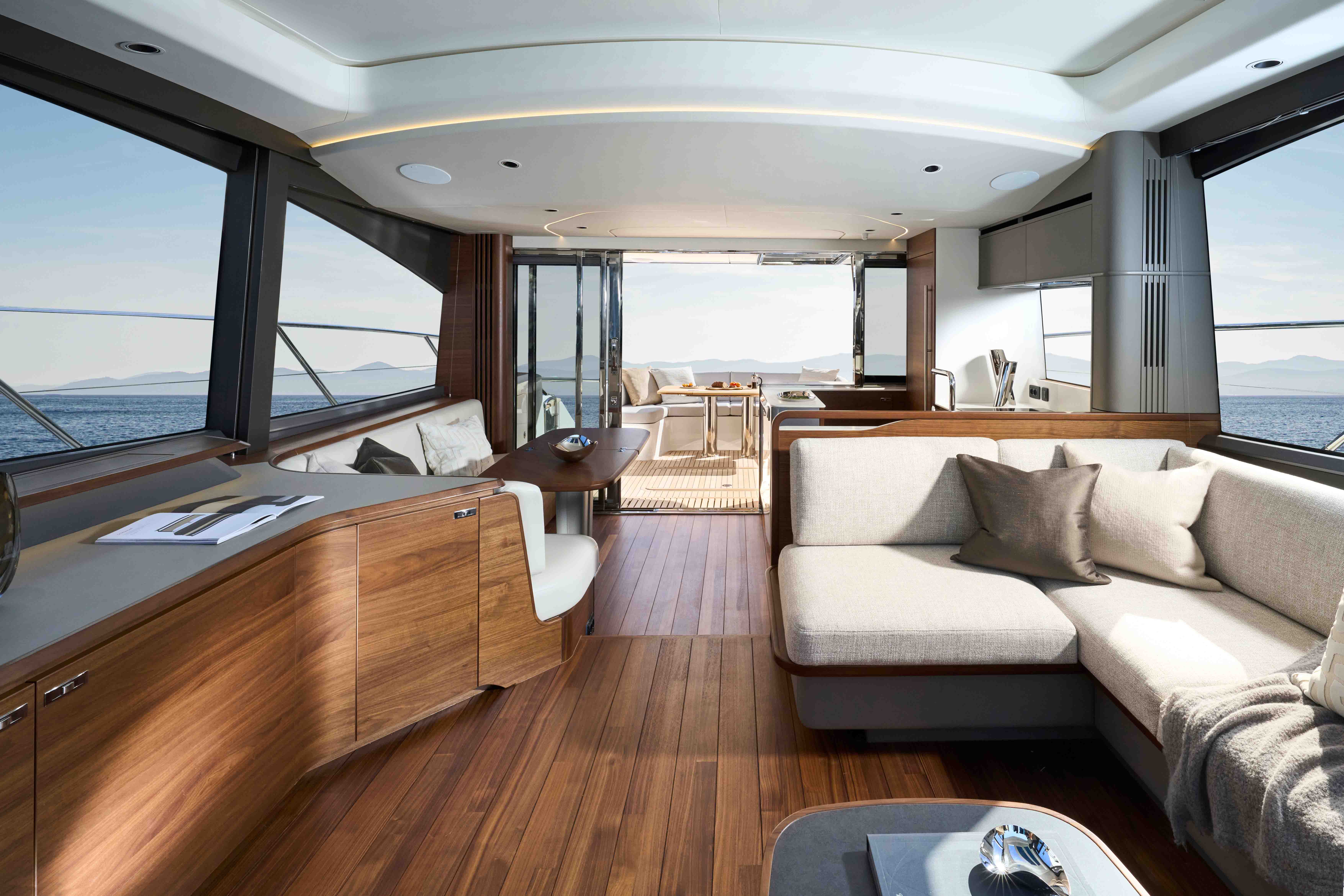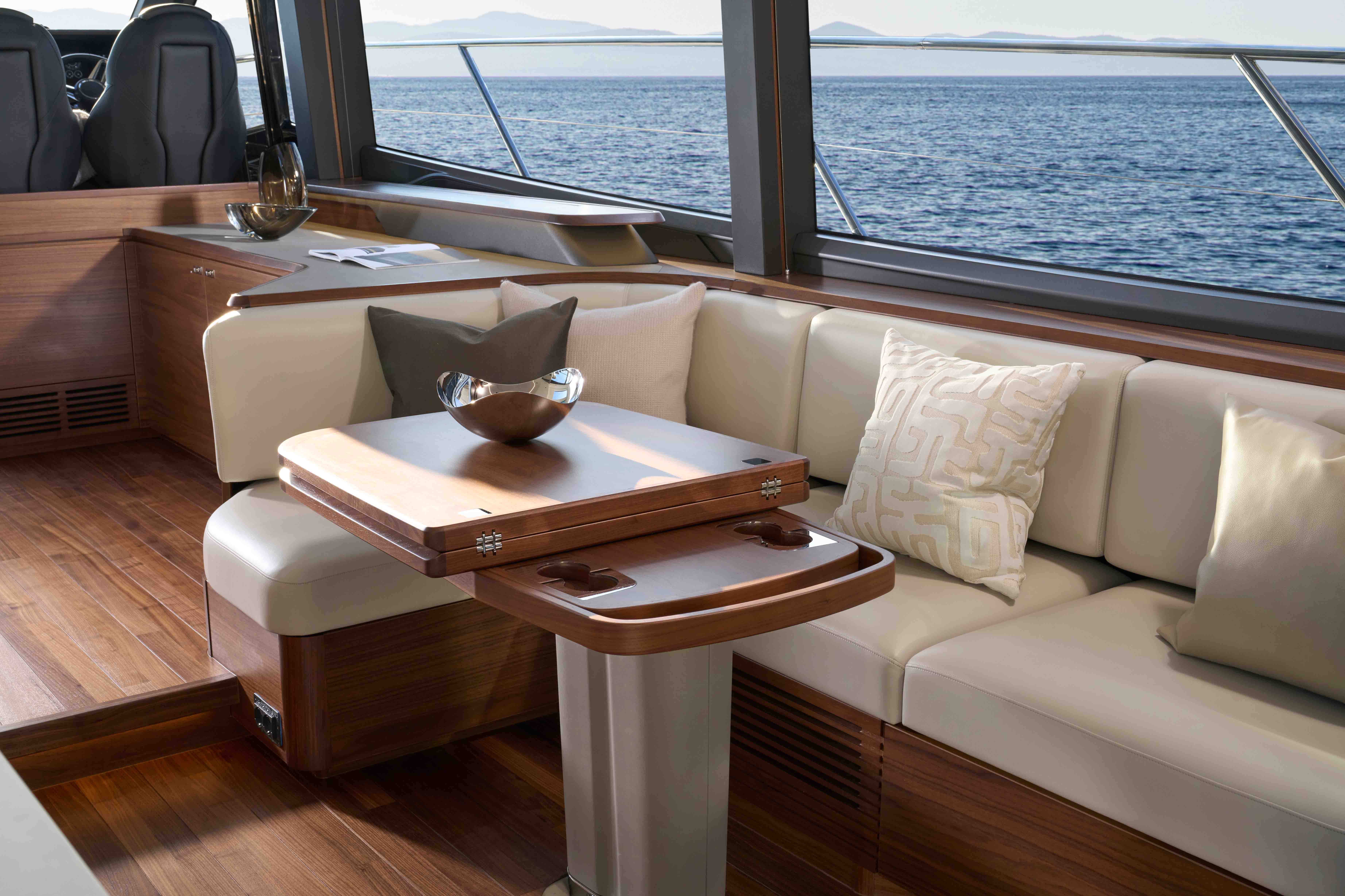 Die begeisternde V65 legt die Messlatte im Hinblick auf Design und Performance höher. Der flexible Salon kann entweder klimatisiert oder dank der dreiteiligen Schiebetür achtern und eines Schiebedachs in einen Platz im Freien umgestaltet werden.