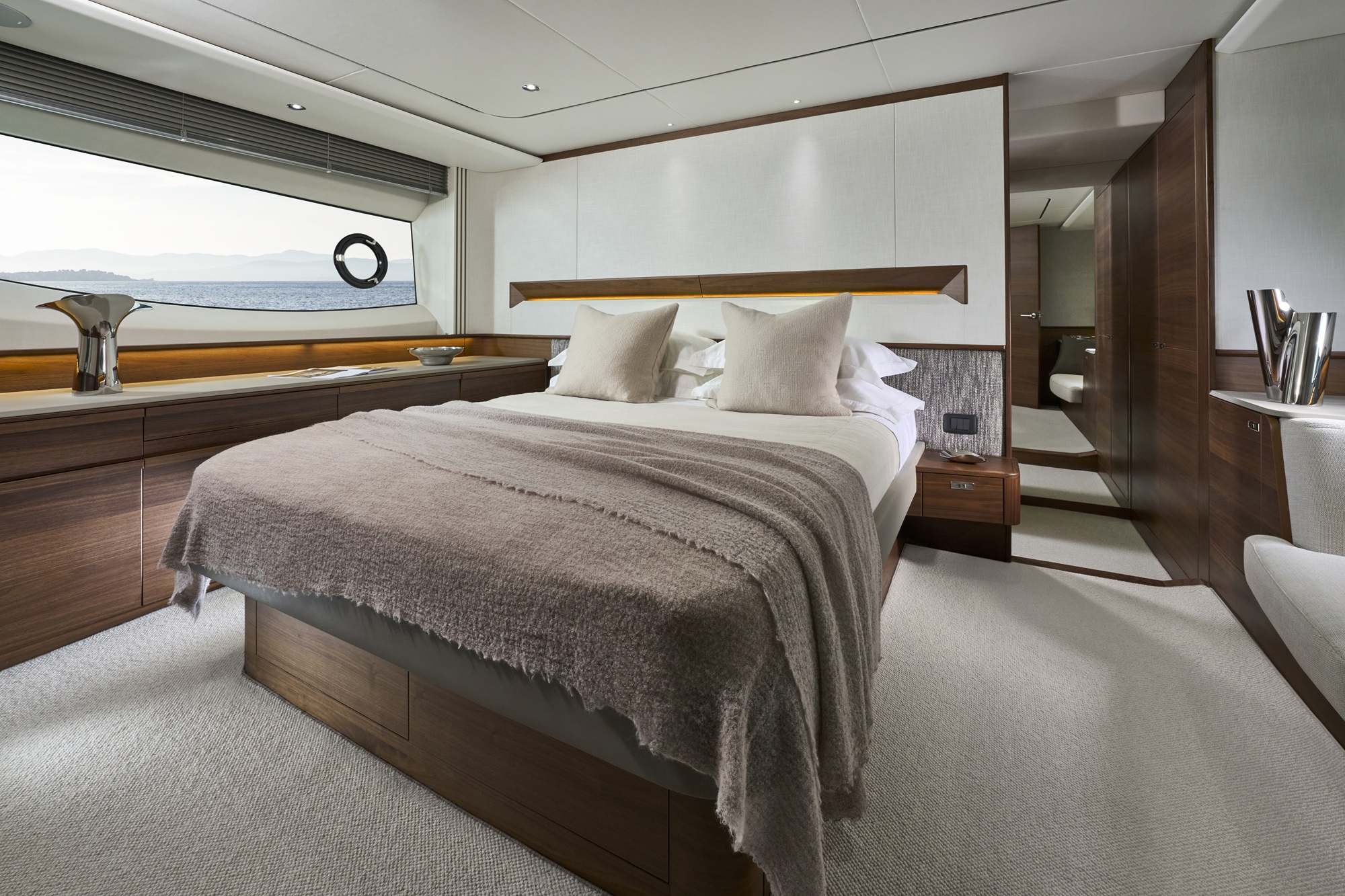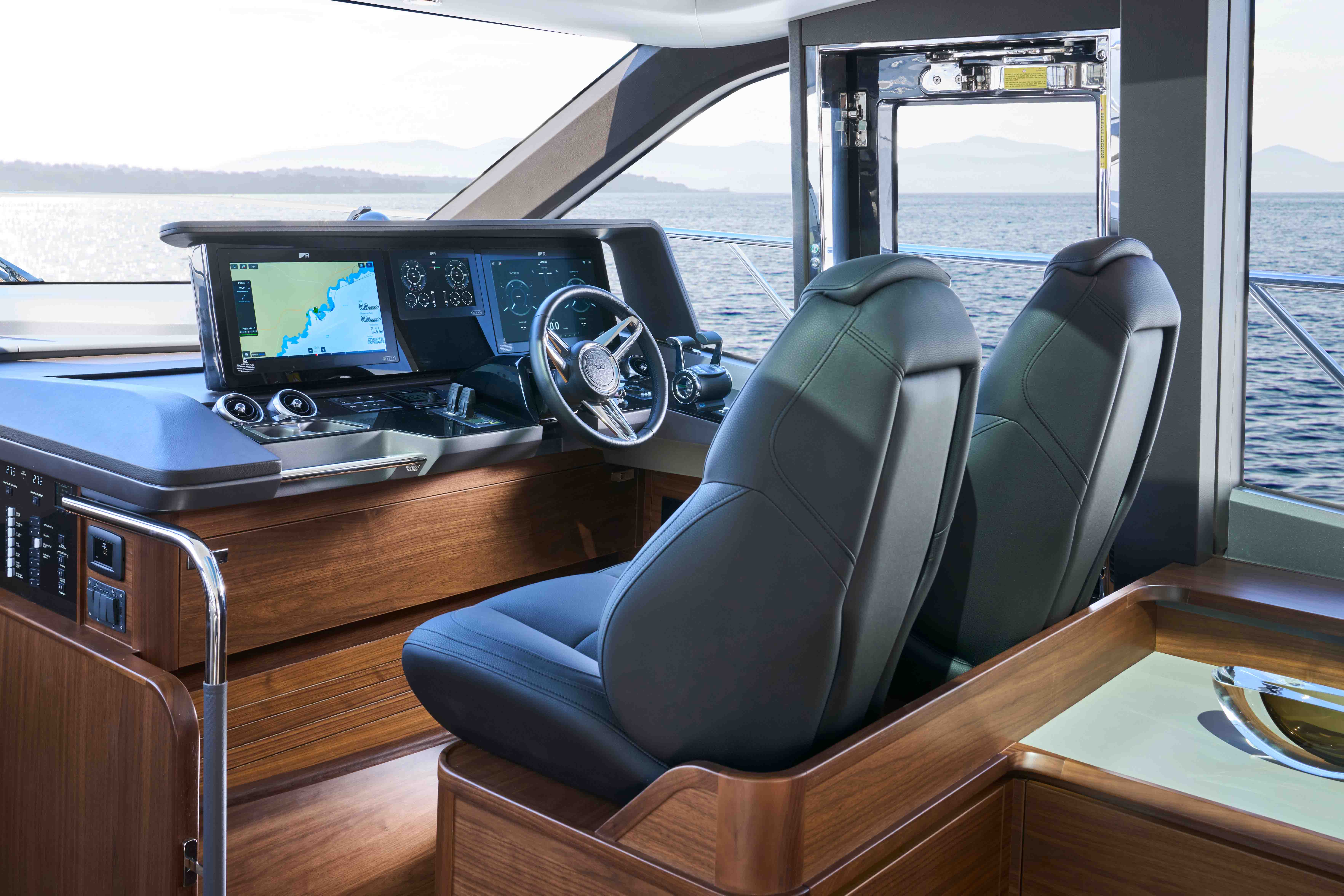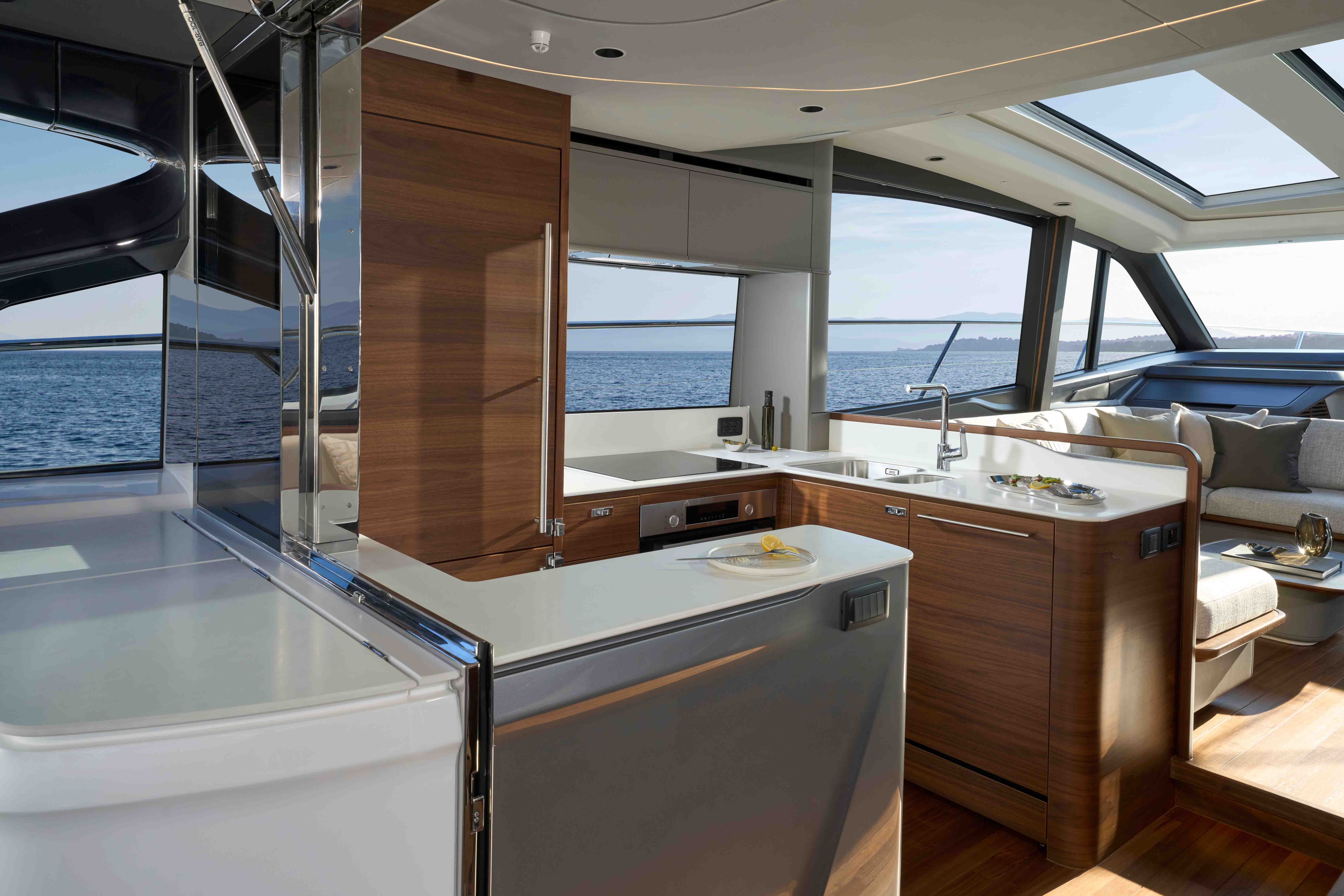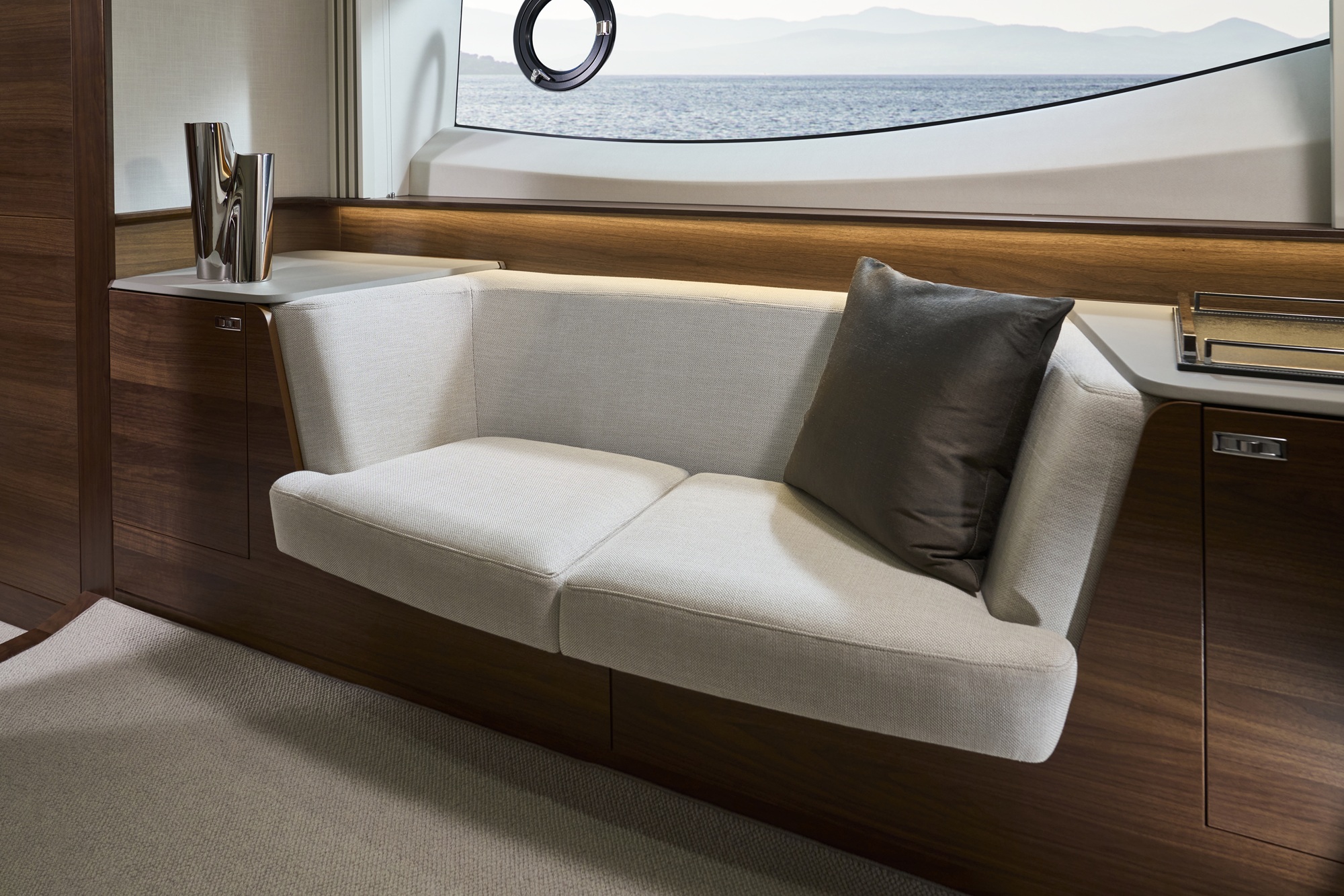 Die begeisternde V65 legt die Messlatte im Hinblick auf Design und Performance höher. Der flexible Salon kann entweder klimatisiert oder dank der dreiteiligen Schiebetür achtern und eines Schiebedachs in einen Platz im Freien umgestaltet werden.