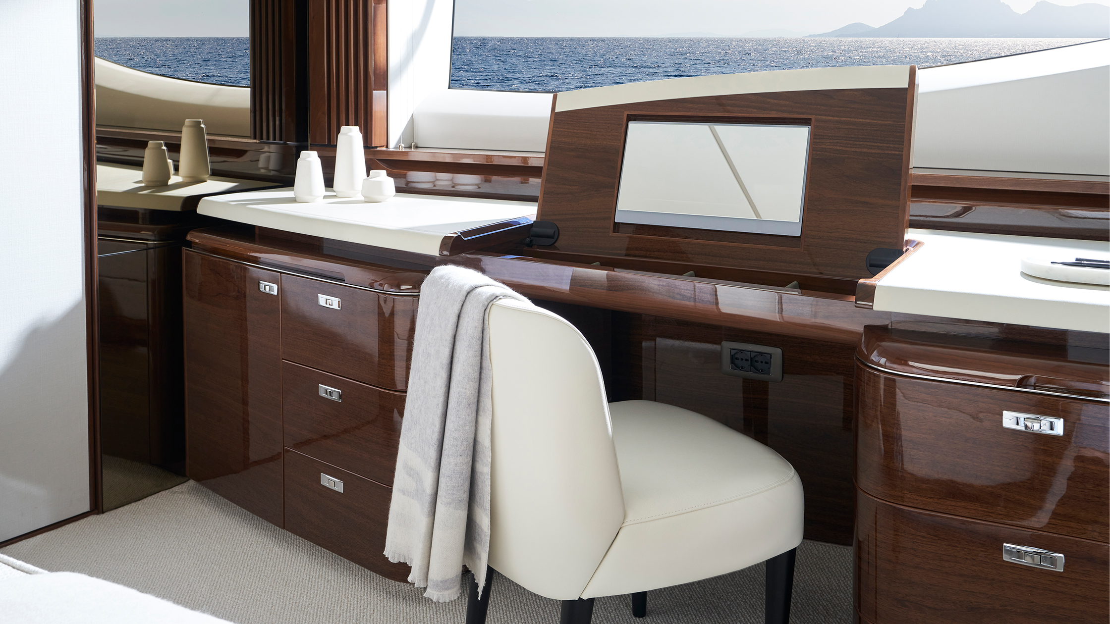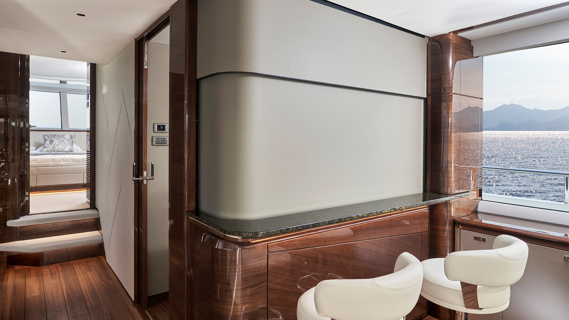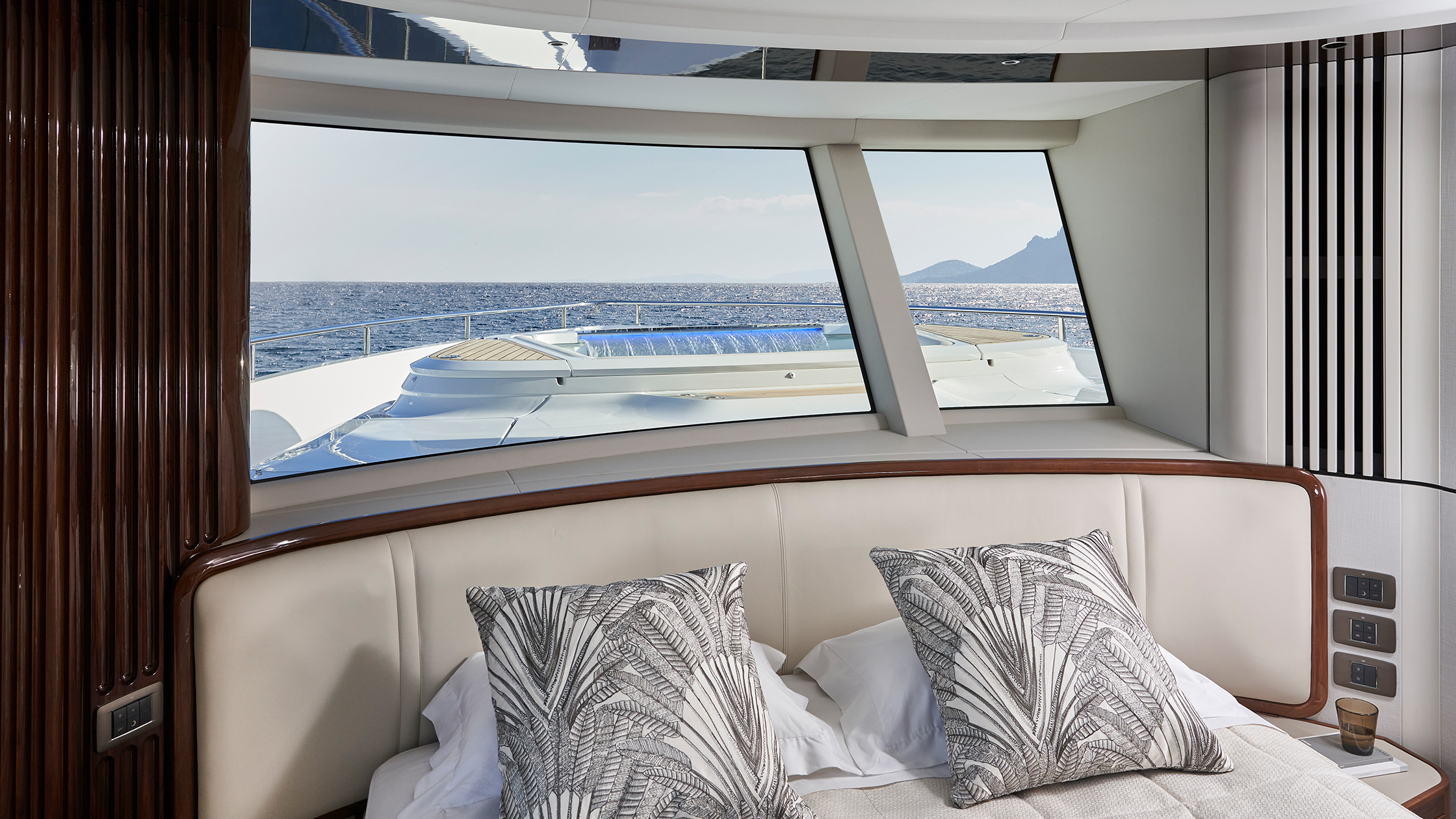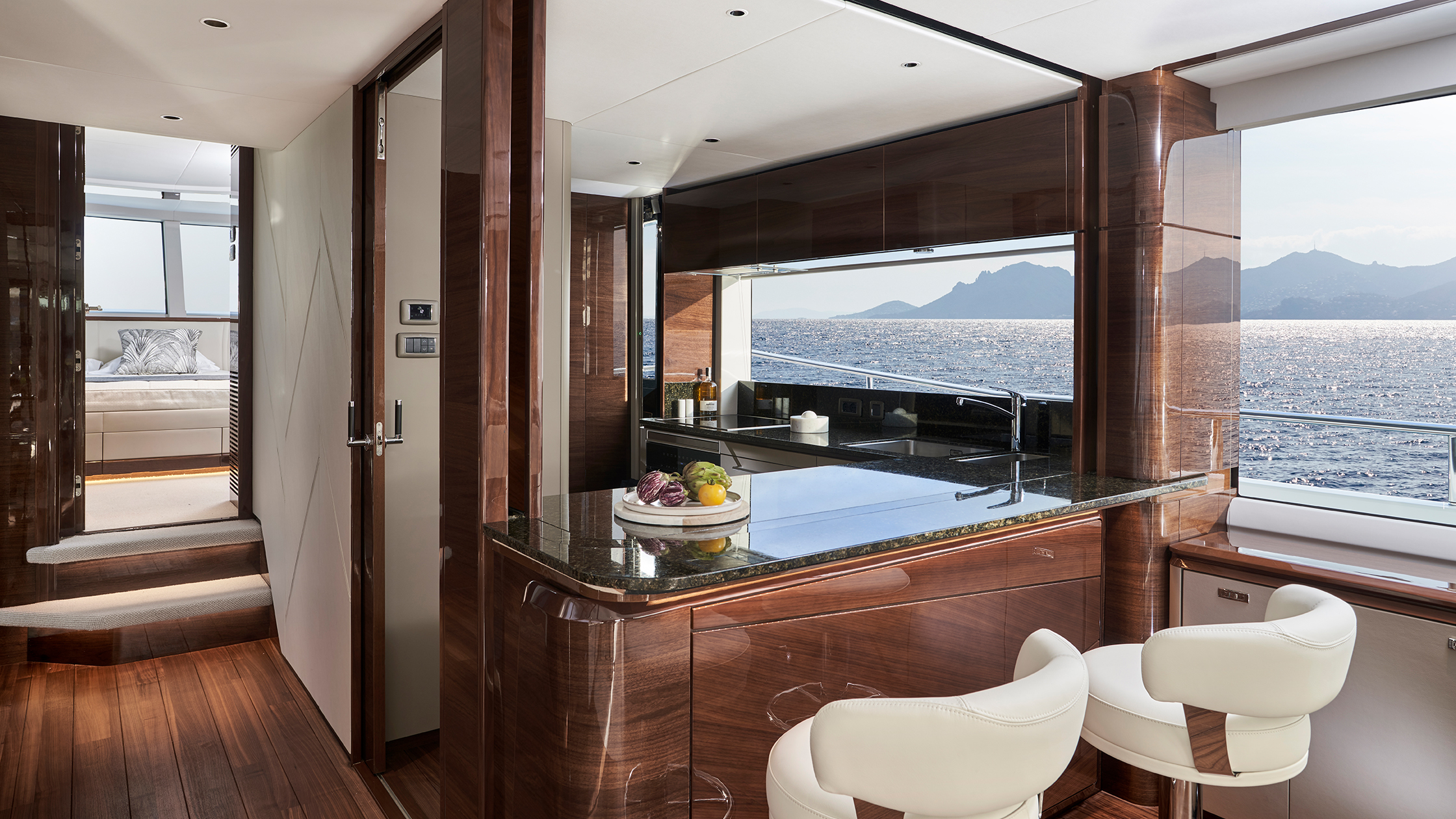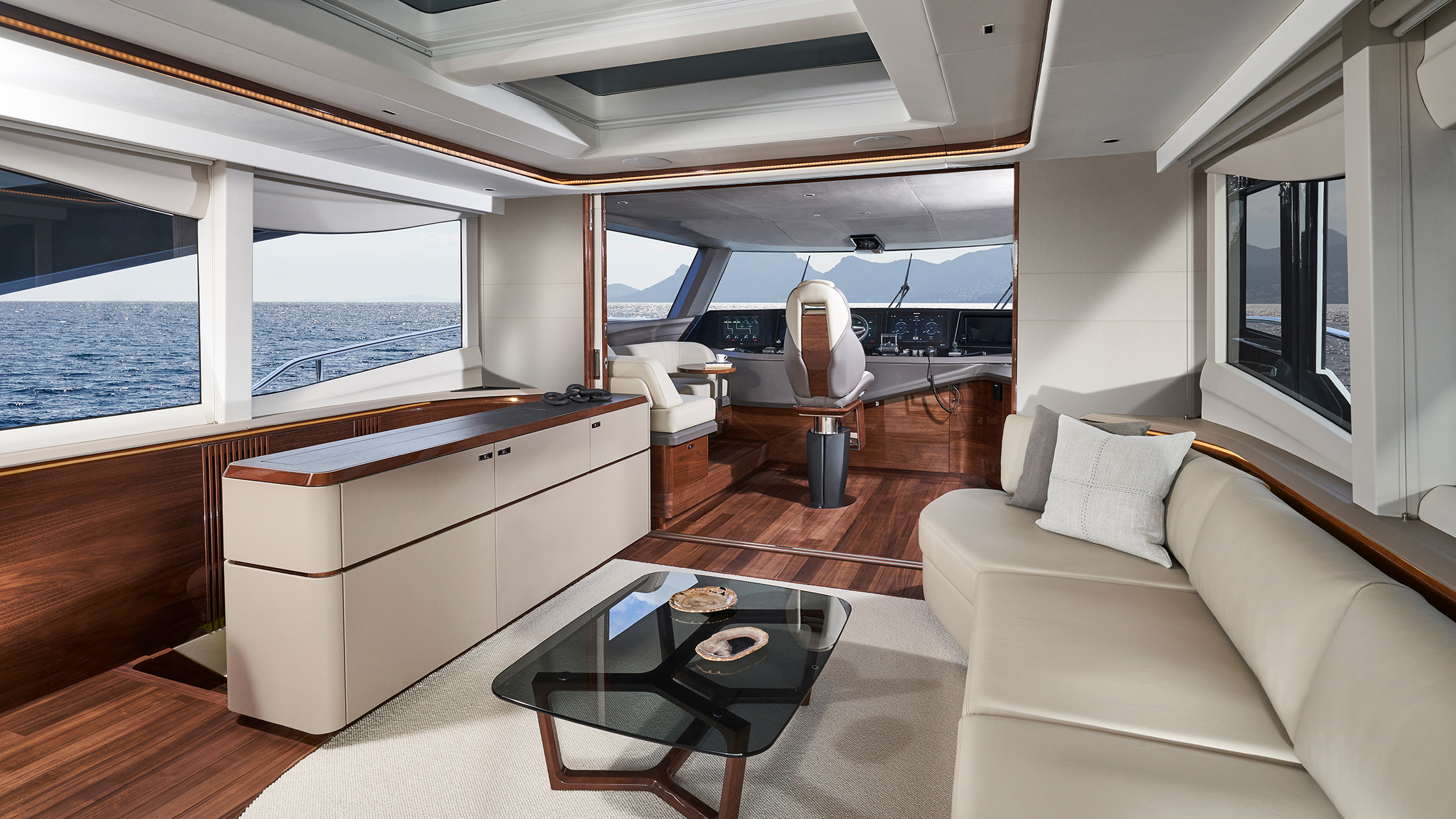 Durch die Fenster, die sich über die gesamte Länge des Hauptdecks ziehen und den Salon, die Kombüse und den vorderen Essbereich umschließen, genießt man auf der X80 immer einen ungehinderten Blick nach draußen.