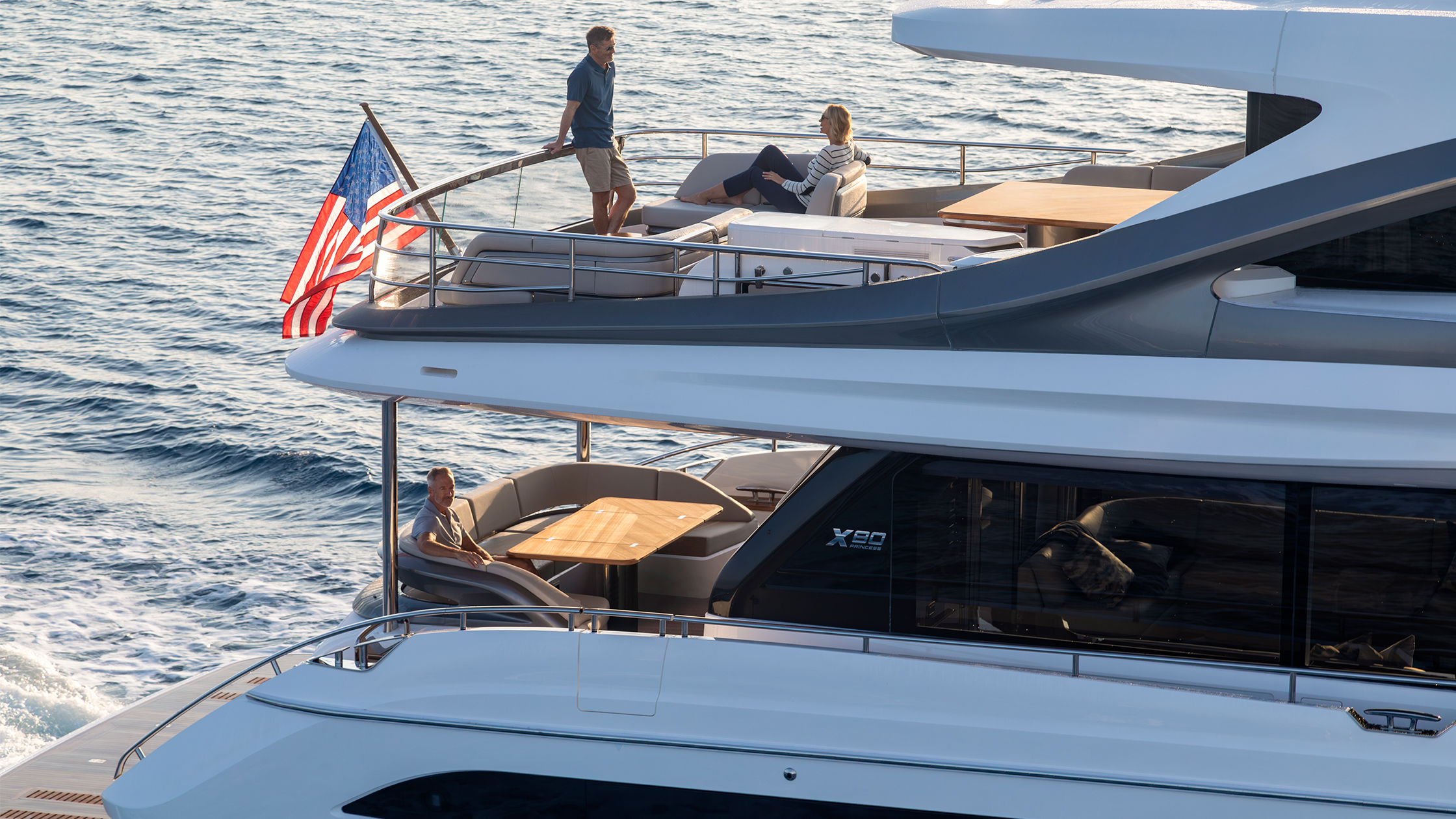 Mit der X80 werden das fließende Design und die wunderschön geformten Oberflächen der X Class auf eine 25-Meter-Yacht übertragen, deren Super-Flybridge 30 % mehr nutzbaren Innenraum bietet als bei einer herkömmlichen Flybridge-Yacht dieser Länge.