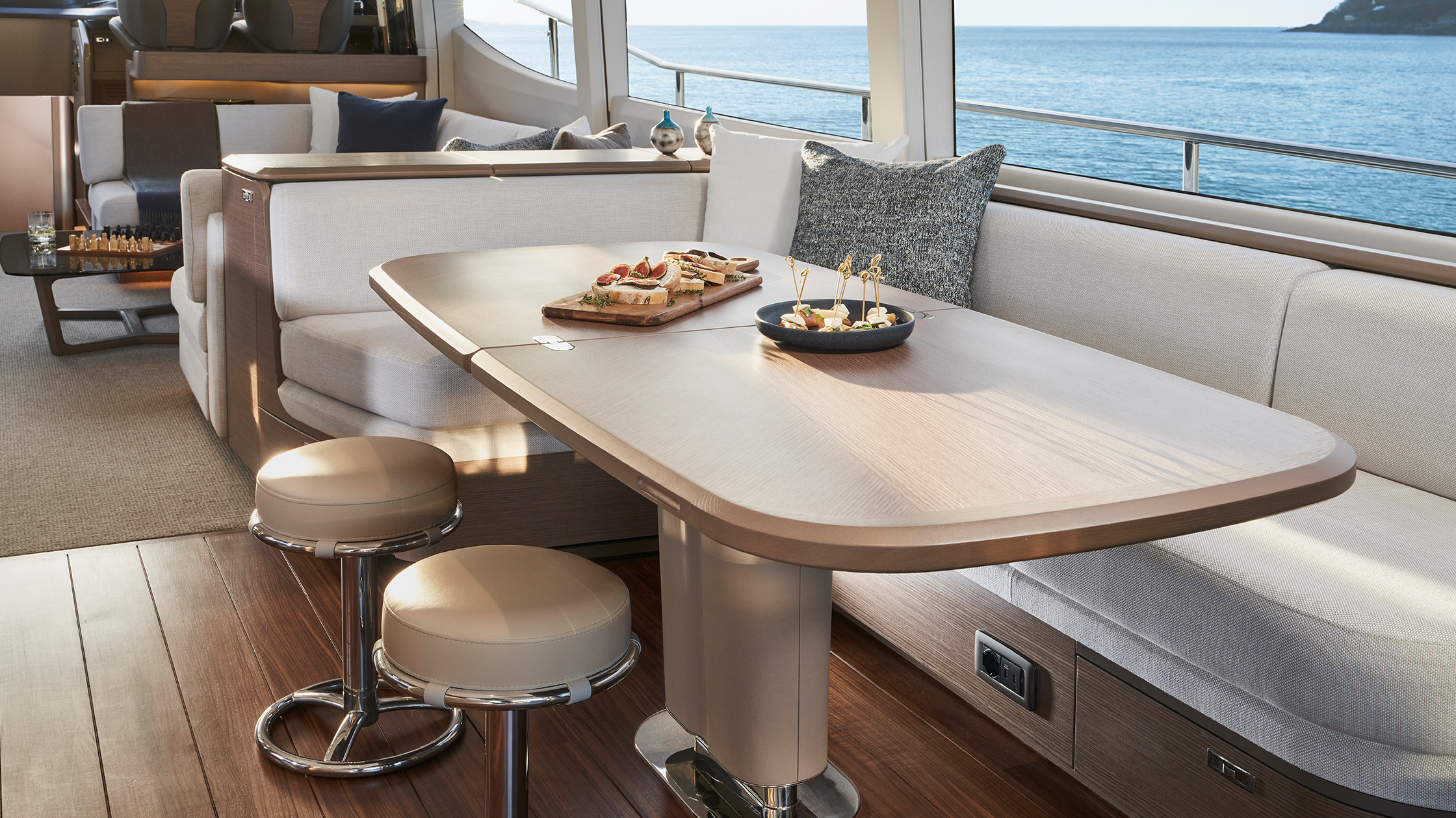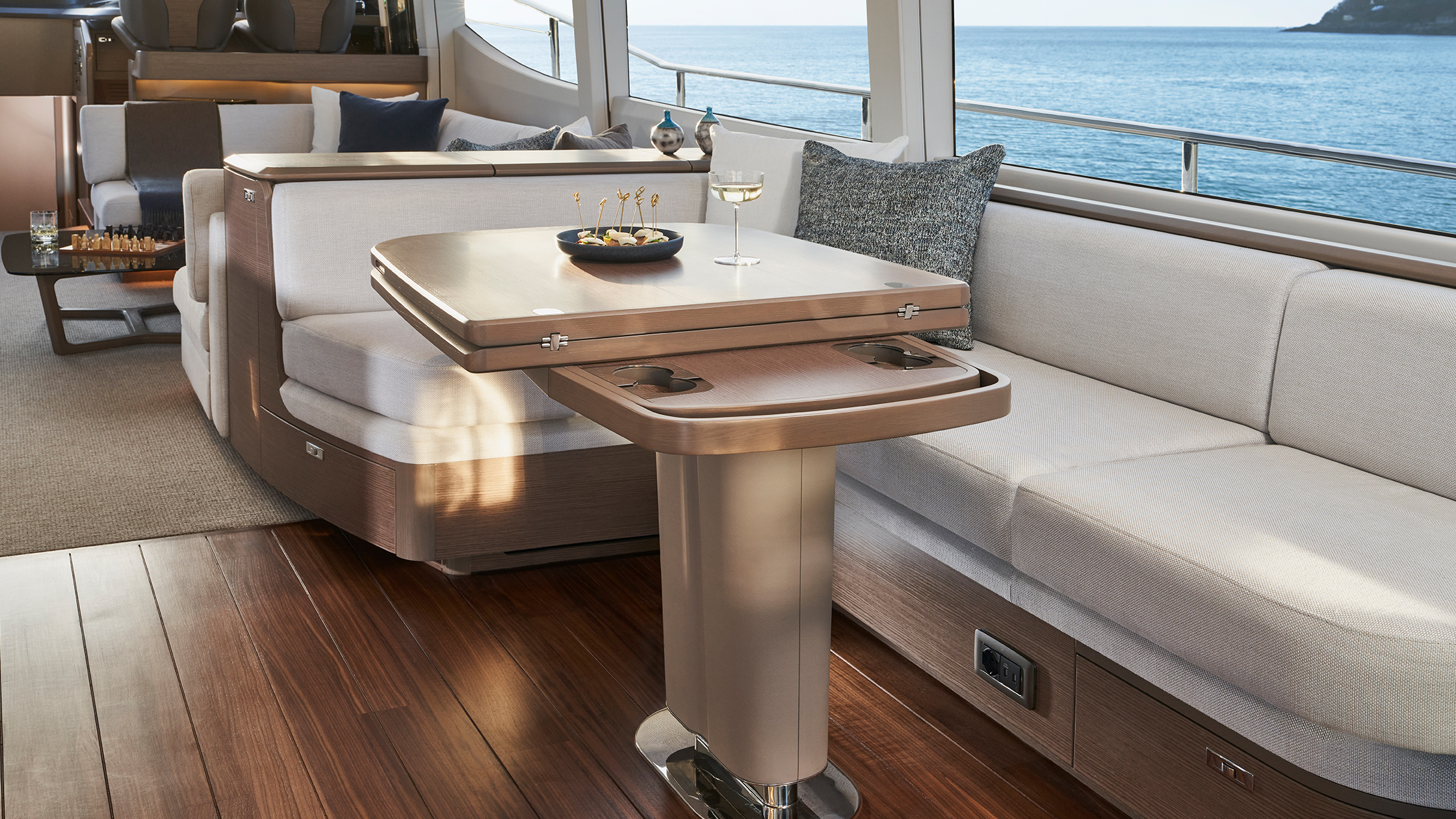 Die Y72 vereint die Designsprache und die überragende Verarbeitungsqualität der Y Class in einer 22-Meter-Yacht und überzeugt durch ein hohes Maß an Kultiviertheit. Elegante Oberflächen in allen Bereichen sorgen für eine klare, moderne Ästhetik.