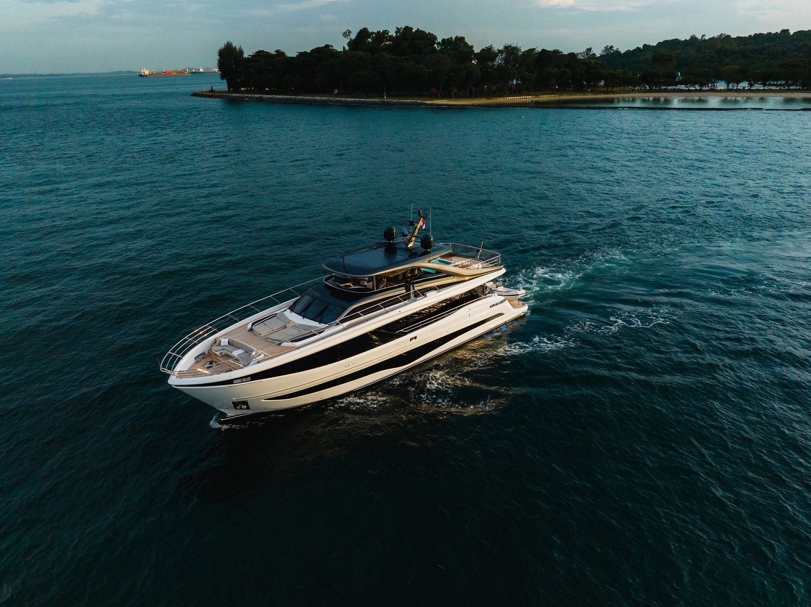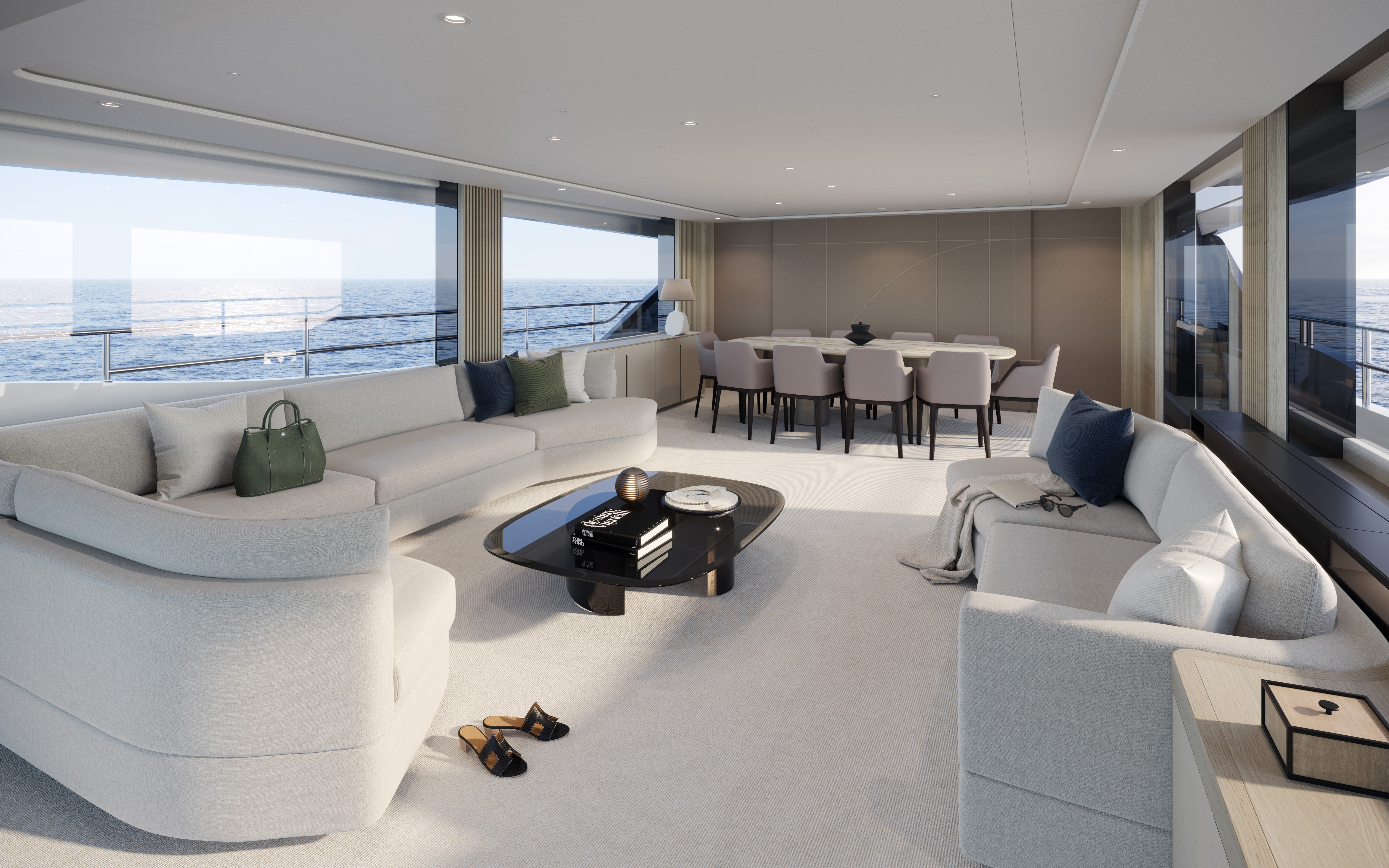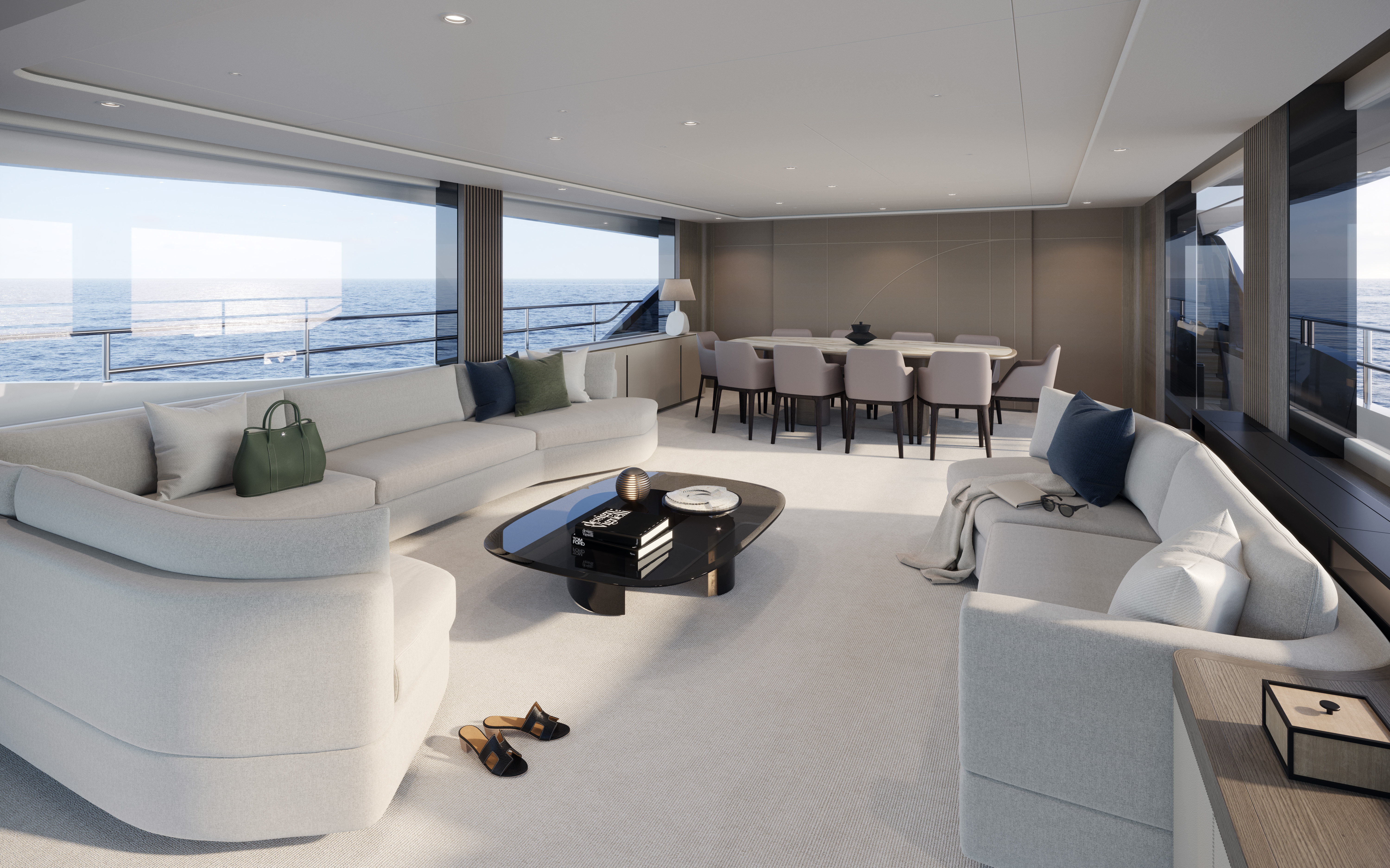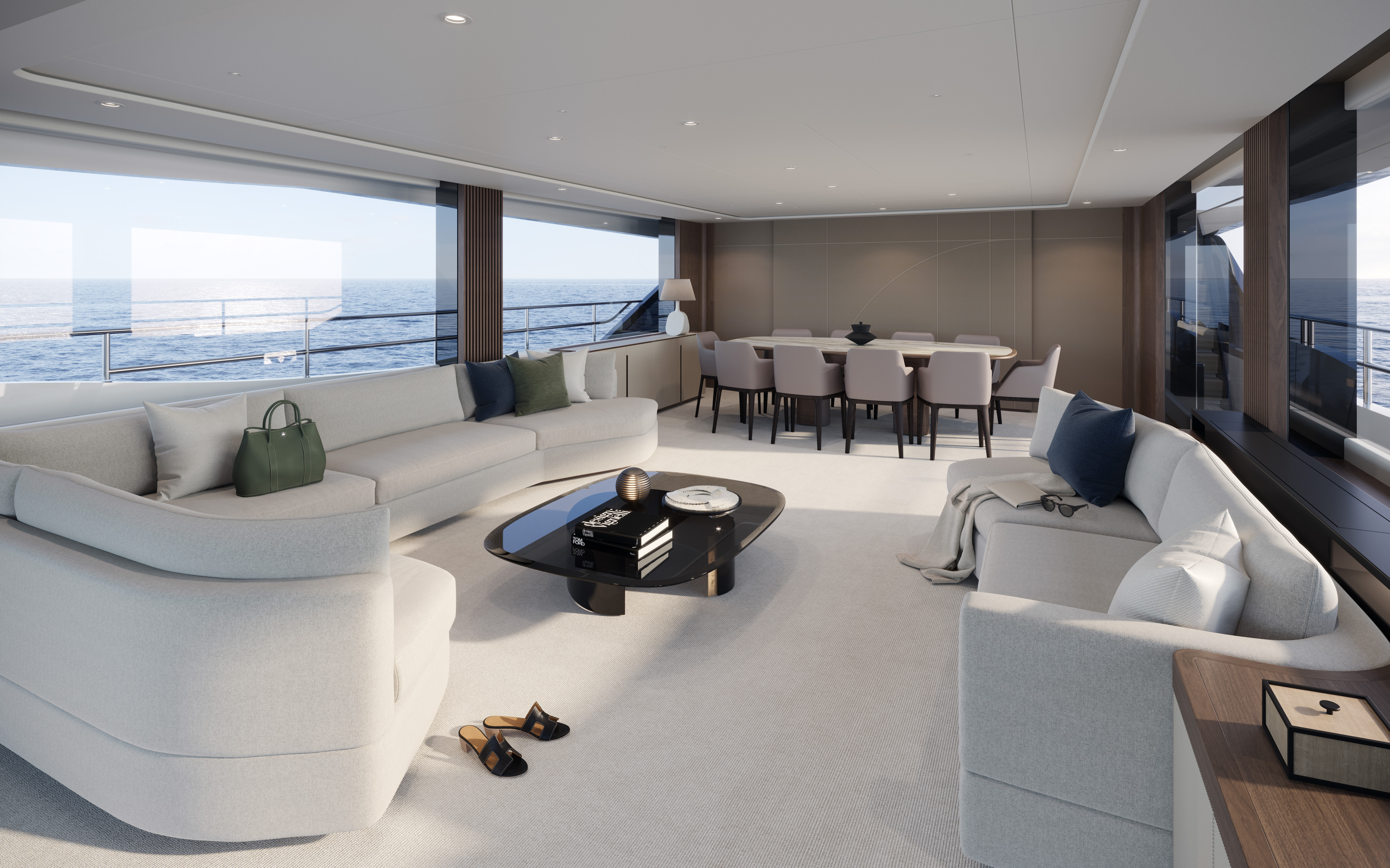 Durch die Verbindung von Form und Funktion bietet die Y95 großzügige Wohn- und Aufenthaltsbereiche innen und außen, die mit denen größerer Yachten vergleichbar sind. Das edle Exterieur wird durch die über die ganze Rumpflänge reichenden Fensterflächen perfekt abgerundet, während das Interieur Eleganz und Ruhe ausstrahlt.