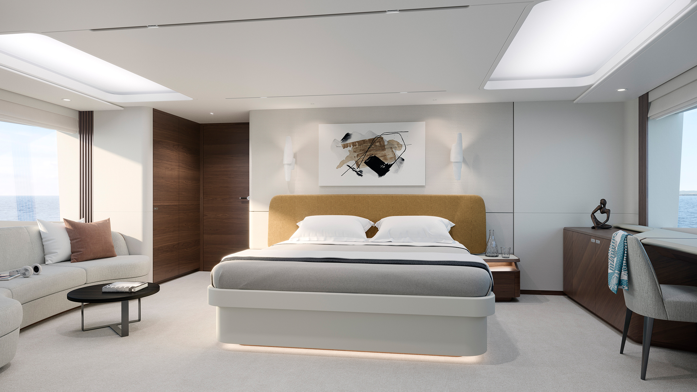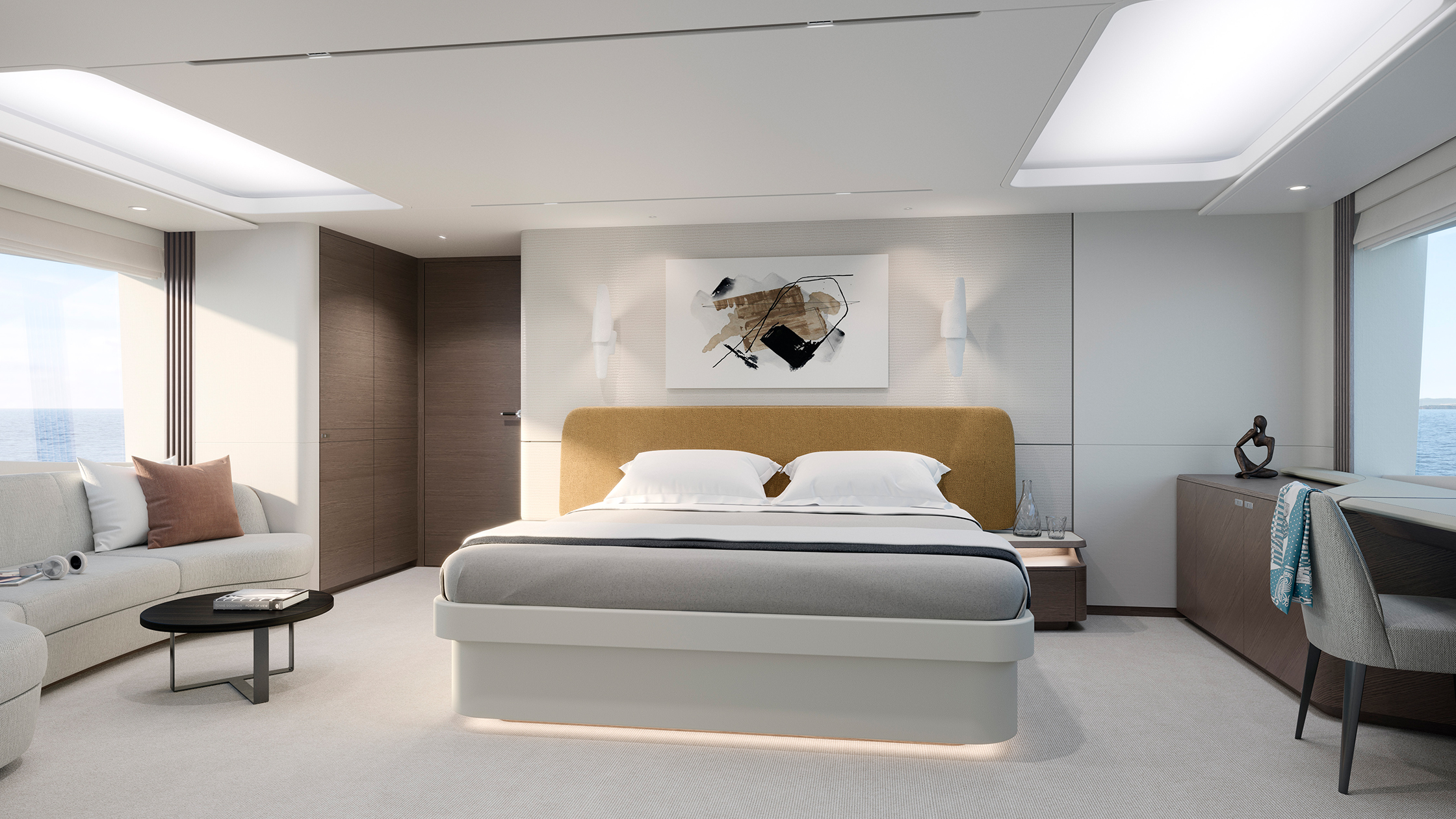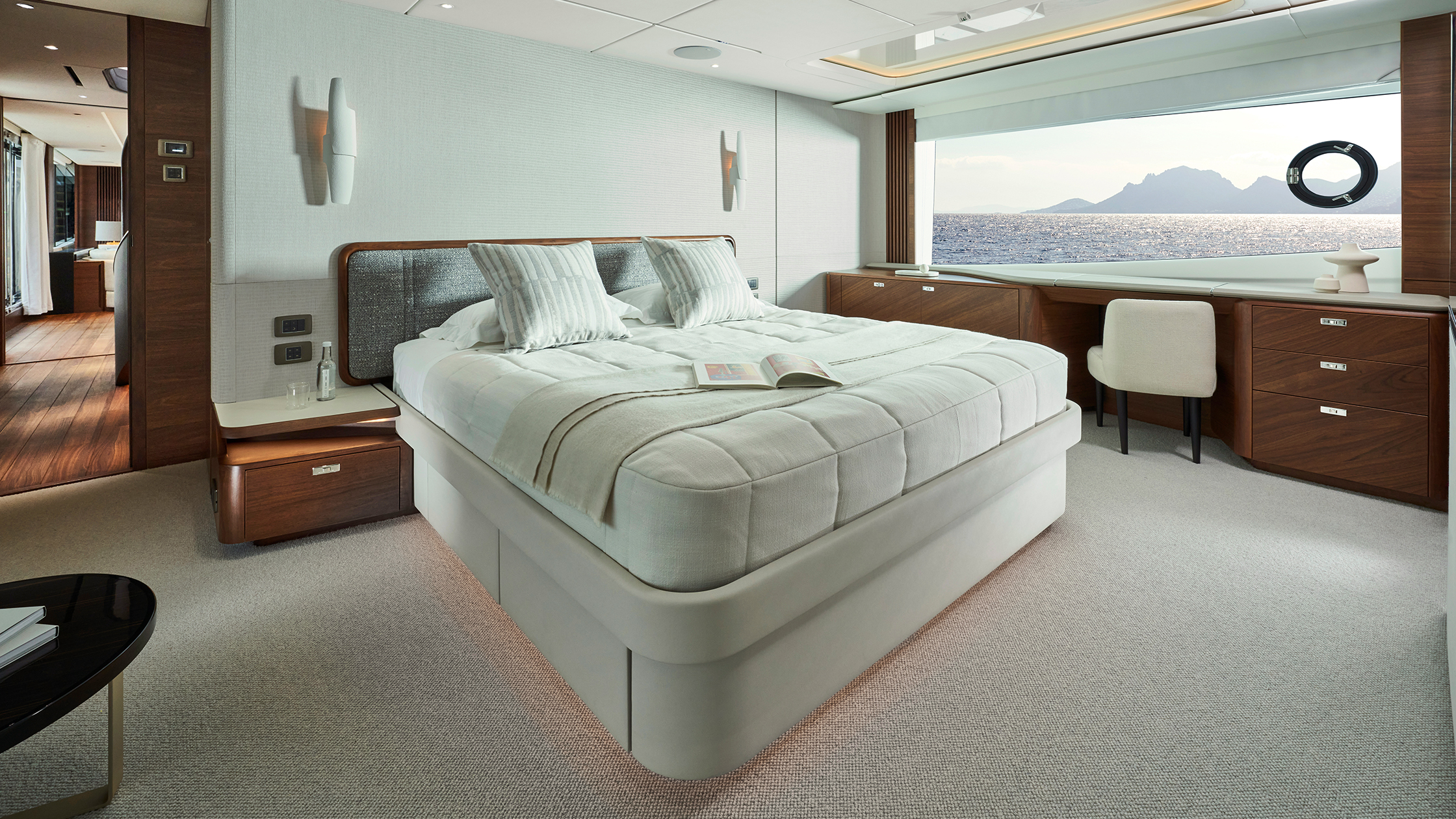 Das Platzangebot im Innenraum ist mit dem größerer Yachten vergleichbar, und das Hauptdeck der Y95 begeistert mit einer die ganze Breite einnehmenden Eignerkabine mit Oberlichtern. Ergänzt wird diese durch vier gut ausgestattete Gästekabinen mit eigenem Bad sowie durch großzügige Unterkünfte für die Besatzung, wozu auch eine Kapitänskabine mit Doppelbett und eigenem Bad gehört.