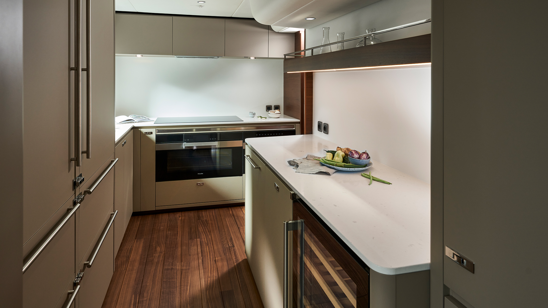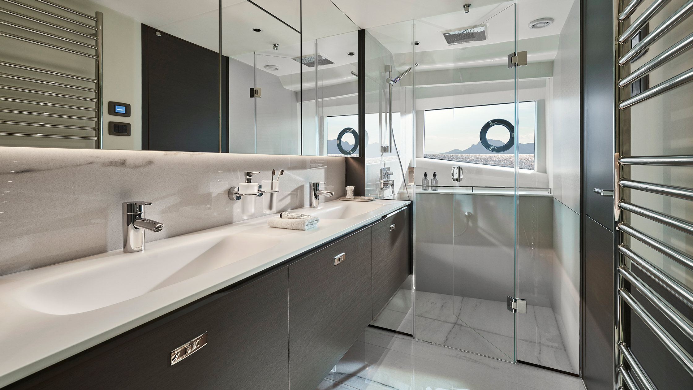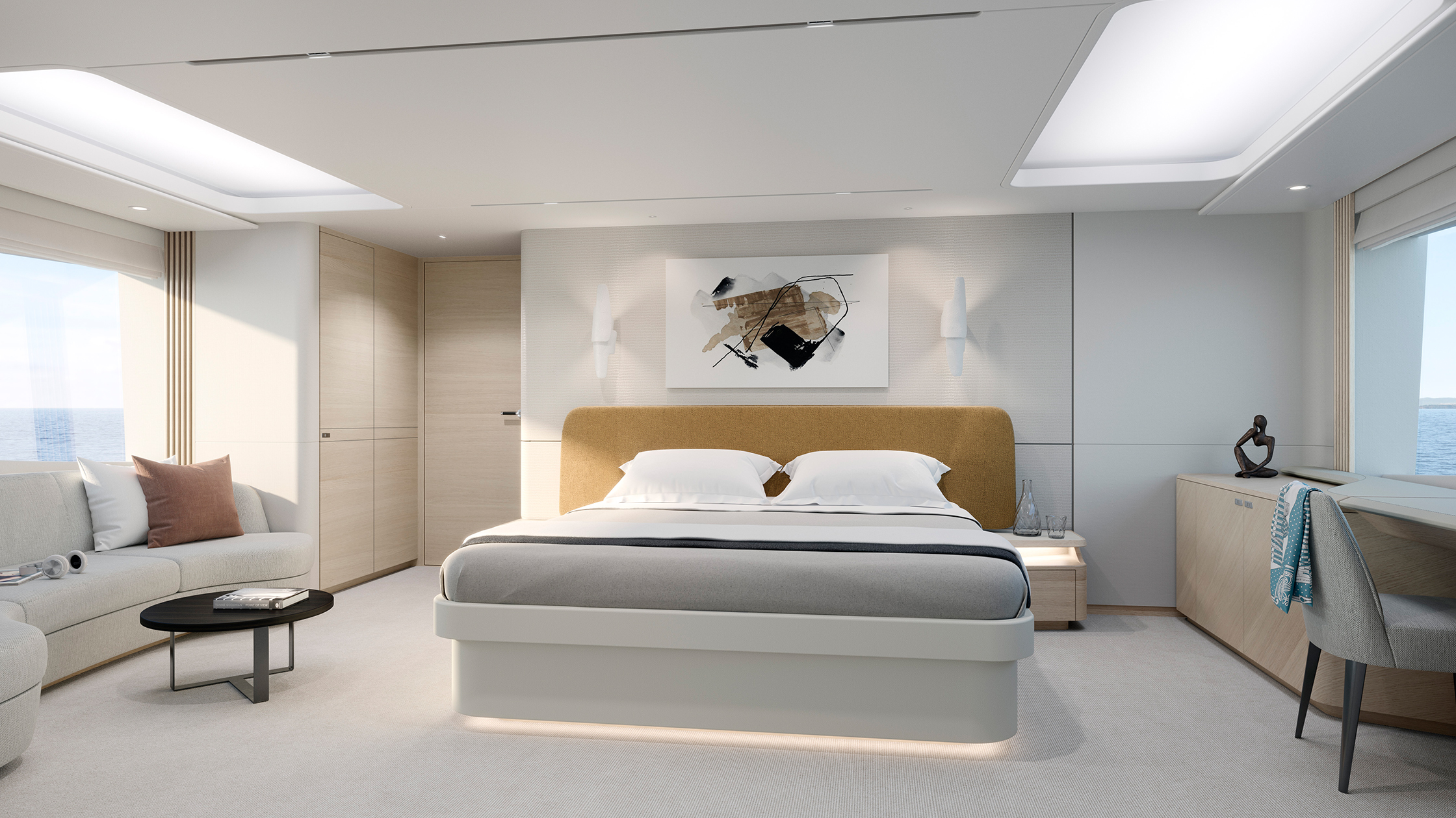 Das Platzangebot im Innenraum ist mit dem größerer Yachten vergleichbar, und das Hauptdeck der Y95 begeistert mit einer die ganze Breite einnehmenden Eignerkabine mit Oberlichtern. Ergänzt wird diese durch vier gut ausgestattete Gästekabinen mit eigenem Bad sowie durch großzügige Unterkünfte für die Besatzung, wozu auch eine Kapitänskabine mit Doppelbett und eigenem Bad gehört.