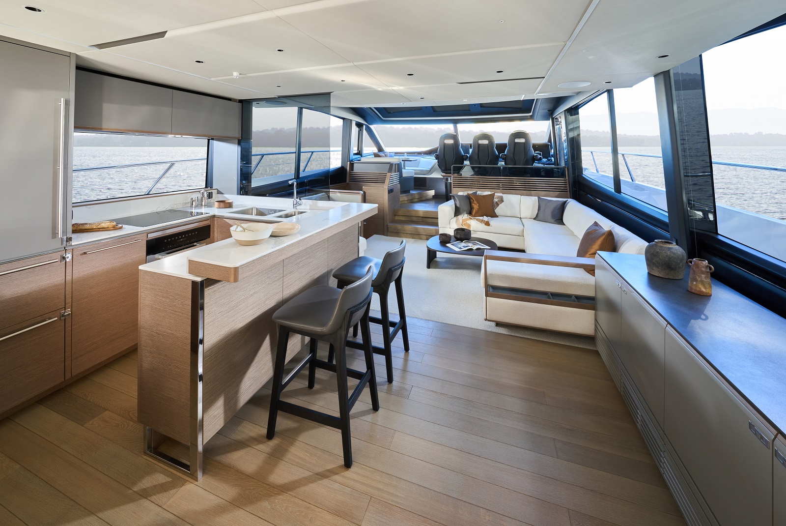 El S80, con inspiración urbana, es una obra de arte con un aire contemporáneo. Con una cubierta principal de un solo nivel y un amplio puente deportivo, los espacios abiertos se combinan con increíbles detalles interiores.