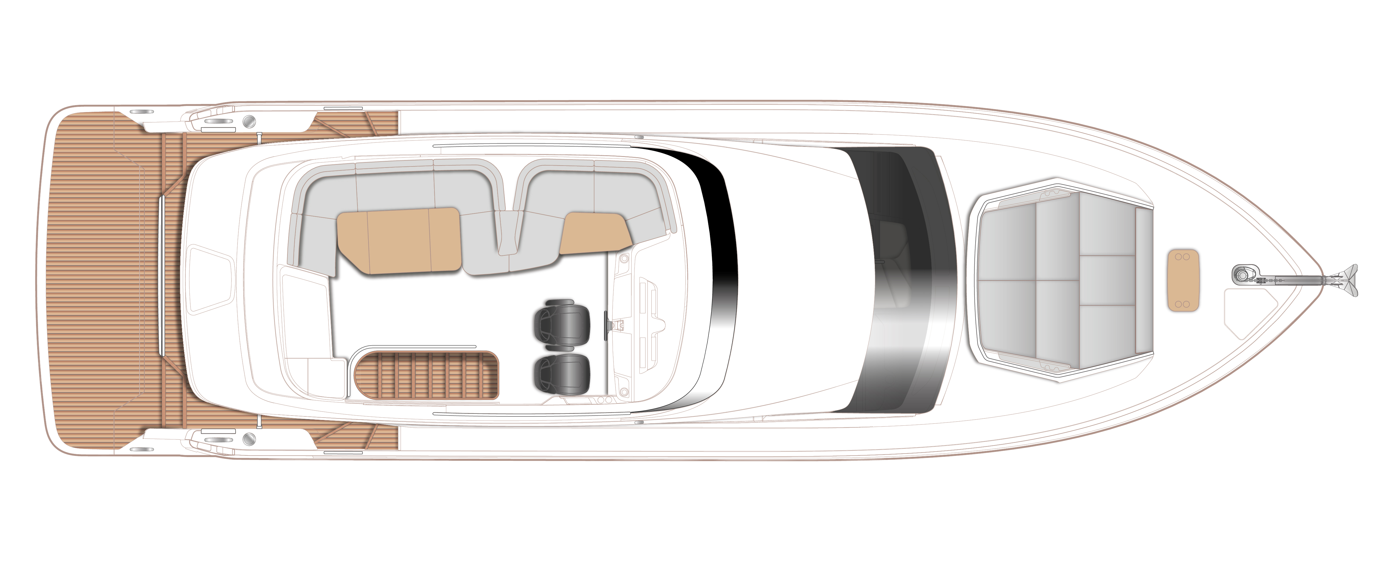 甲板区域采用全新全通尾舷设计,配备朝向船尾可拆装靠背的多功能座椅,全面提升亲水区域的社交体验。F54 的前甲板与宽敞飞桥配备灵活的座椅与日光浴垫,满足放松或社交娱乐需求。