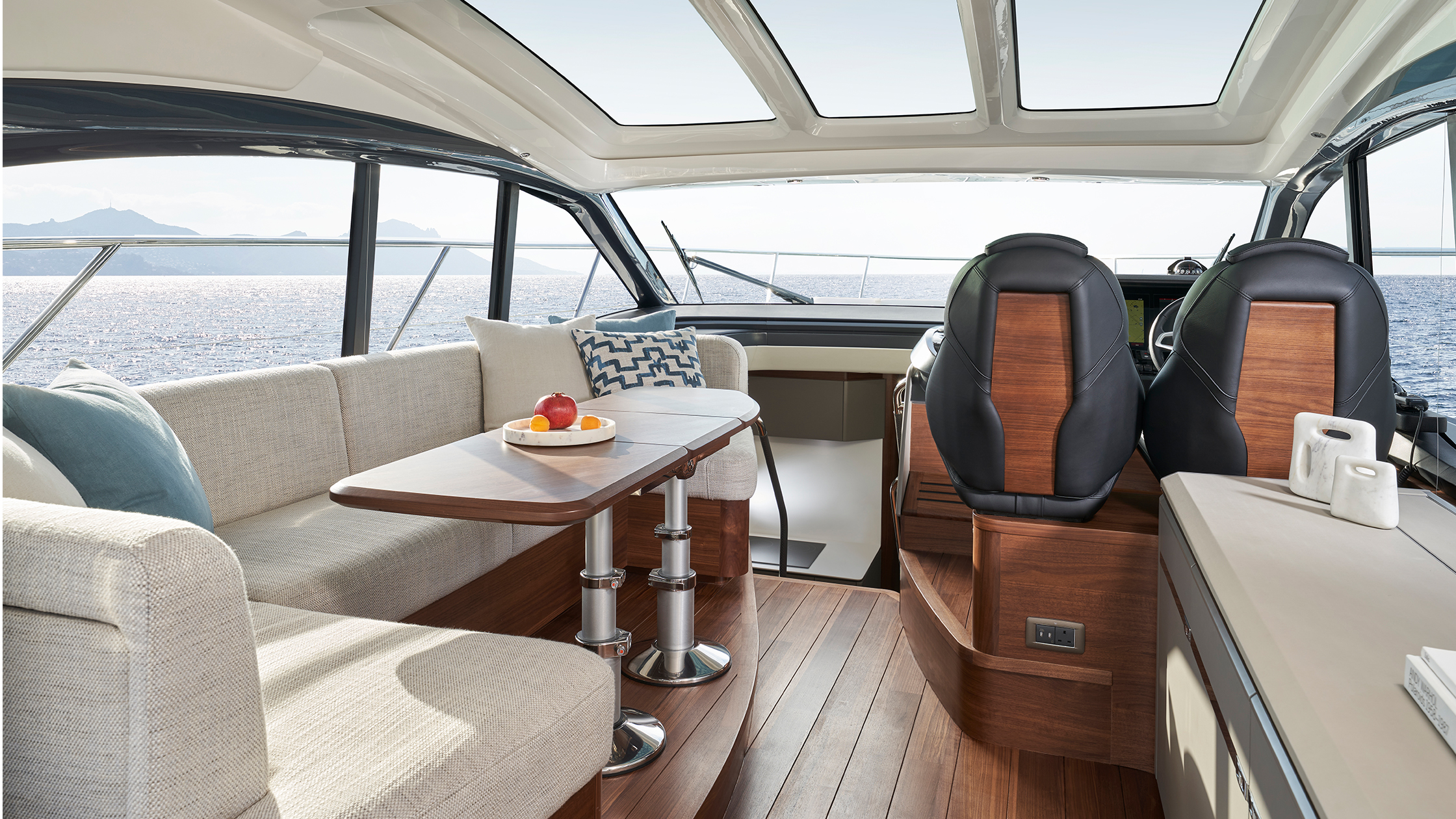 其他科技配置还包括 Naim 出品的高级音响系统,以及全新的 Garmin On-Deck 智能船舶管理系统,让您能够通过智能手机应用程序在几乎任何地方对选定的船上系统进行跟踪、监视和控制。