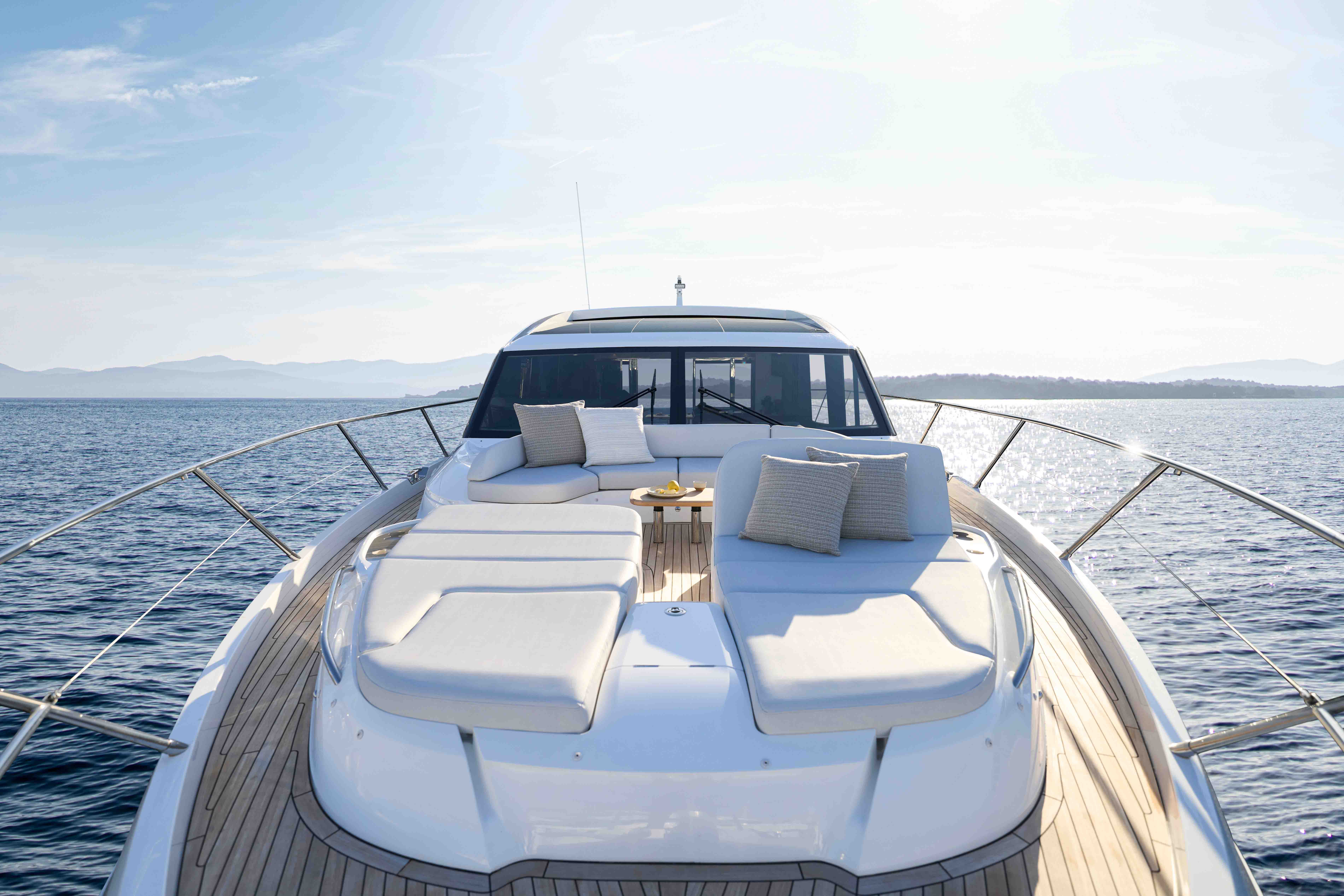 激越人心的 V65 在性能与设计上双双树立新标杆。布局灵活的客厅配有空调系统,可确保室内保持清凉舒爽,您也可将三片式船尾滑动门和伸缩式天窗打开,充分感受自然气息。